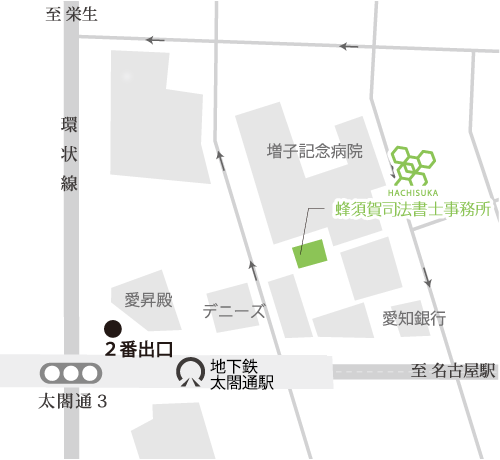 地下鉄桜通線 太閤通駅(旧中村区役所駅)2番出口から徒歩1分です。